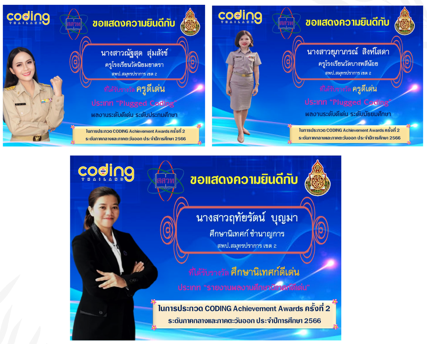 ประกาศผลการคัดเลือกผลงานดีเด่นด้าน Coding "CODING Achievement Awards" ครั้งที่ 2 ระดับภาคกลางและภาคตะวันออก ประจำปีการศึกษา 2566